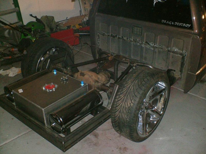 frame off to powdercoating/Need another load to chrome/ This project is taking a long time and I want to thank all of my club members in Perfect Poise. Everyone has had a hand in buidling this truck!!!