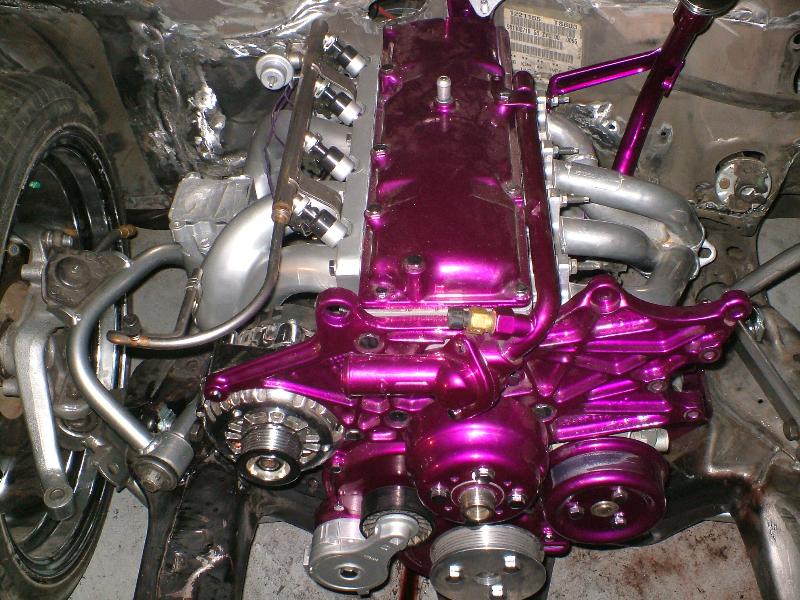 2.2 liter/Sunfire intake for stock hood/everything powder coated or painted/every nut and bolt is chromed/STS performance pullies/Screamn Demon coils and wires/ pace setter header/ tuff stuff chrome alternator