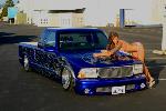 Blue with silver flames