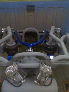 front cut up to fit contitech 2600's...full "backhalf lol" cantilever 3 link custom made upper and lower link bars...slam specialties re-8s..custom built fuel cell 36 gallons....all of the rear work was done at WWW.EXILEFABRICATIONS.COM