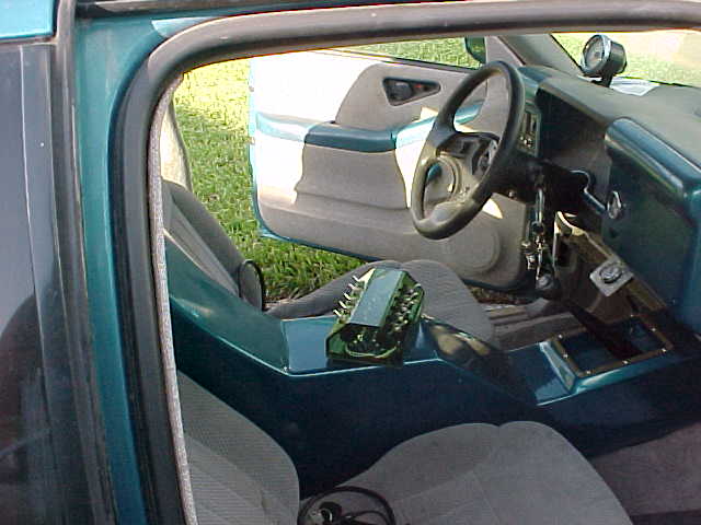 gray tweed, teal components, fiberglass dash cover and center console relocated cd player