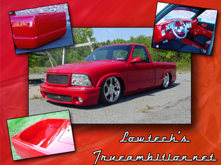 Fully retweeded black interior and repainted victory red. Billet cranks,shifter,and pedals.Envoy Handels, White light cluster,a/c vents, and glogauge cluster. Colorado Customs Steering Wheel.A/C in glove box with mounted fire extinguisher. Shaved passanger dash handle and airbag. Shaved bezel airbag switch, Shaved door locks. Amps and crossovers mounted behind seats. Pass thru for subs. Blue and Red neon accents