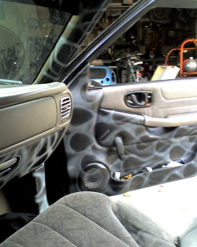 smoothed dash and door panels, beer tap shift knob