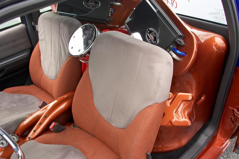 custom fiberglass interior by me! Ps2 where passenger airbag once was. fiberglassed centerconsole with tv smoothed dash ooh yeah and two toned suede and tweed seats!