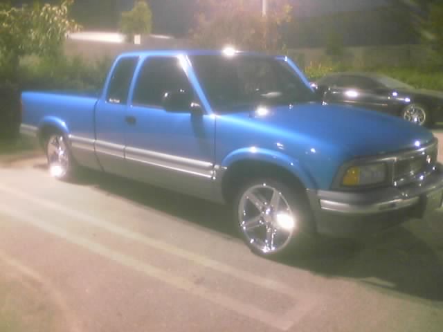 envoy font end,caddy lights,m3 mirrors,shaved tailgait handle,escalade door handles,roll pan,20 inch irocs front 22's in the rear,4 link the rear with a bottle.....