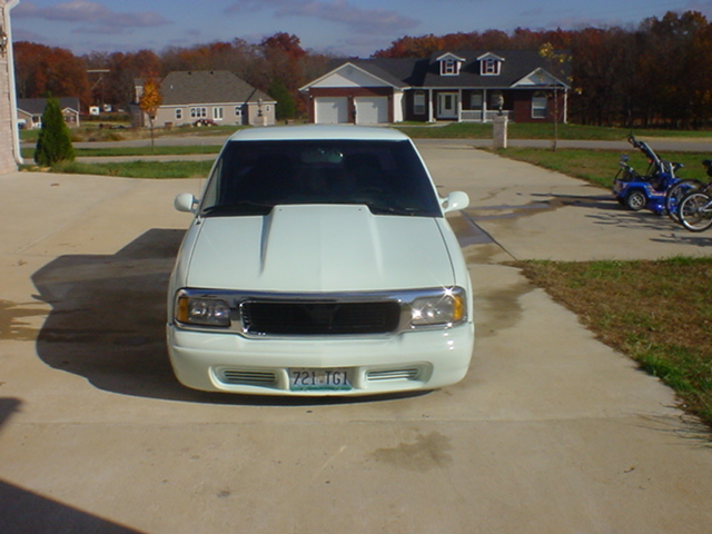 steel cowl hood,M3 mirrors,chrome grill,envoy front bumper,billet antenna,rear shaved,candied altezza's,and painted PPG pastel green.