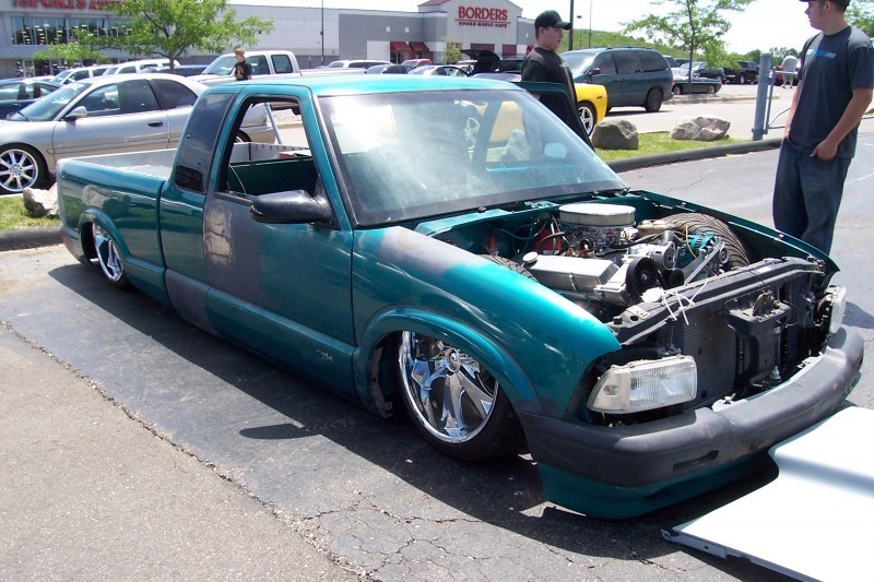 i have a 3 1/2 body drop completely shaved with suicided doors bed has its own square tube frame with new sheet metal trailblazer 3rd brake light sequential led taillights and more junk to do.
