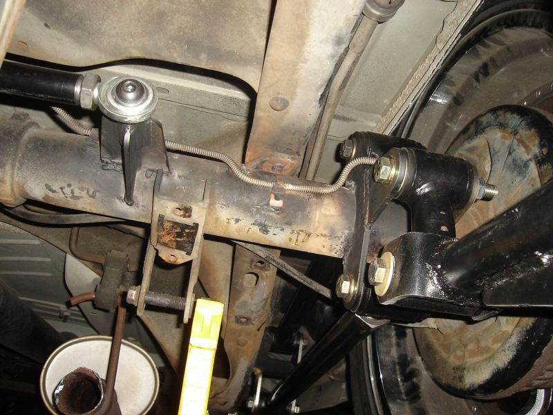 bagged on 4 slam RE7's. engine driven compresor feeding 5 gallon tank and 1/2" air line. custom built rear parellel 4 link with canti attachment.