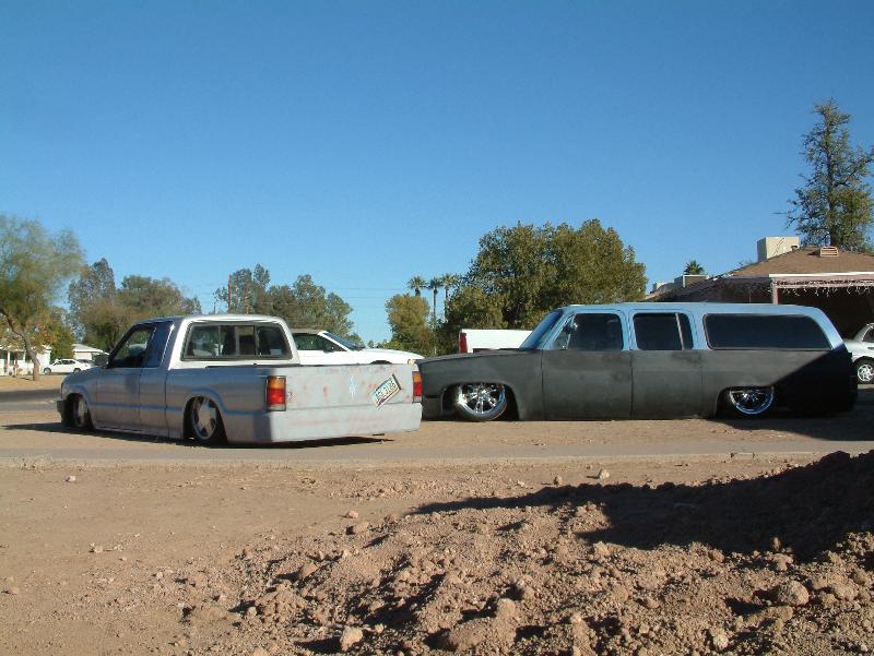 2" bodydrop, 2" Z to front clip, shaved handles, locks, mirrors trim, and gutters, front rollpan.
