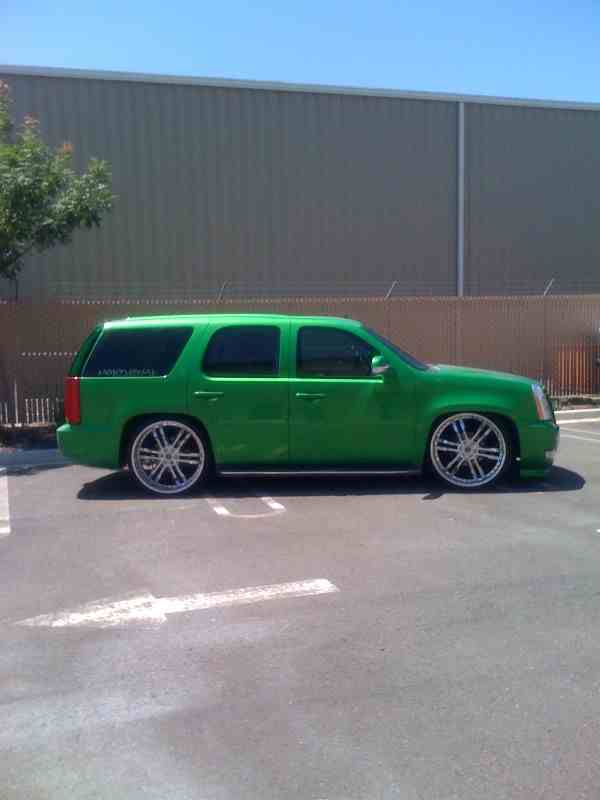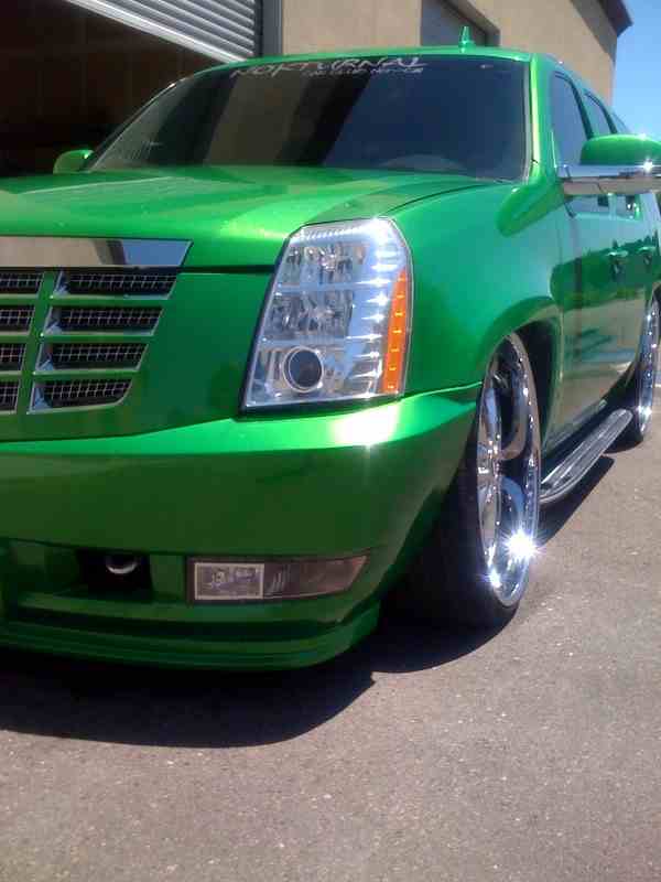 09 cadillac front end conversion, and back conversion, repainted house of kolor lime green with 6 ice pearls over