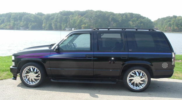 Custom graphics, full billet phantom grille, roll pan, smoked tails,clear corners, Stull Phantom bumper, and a Reflections Steel Cowl Induction Hood. Lite Glow neon kit.