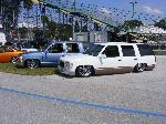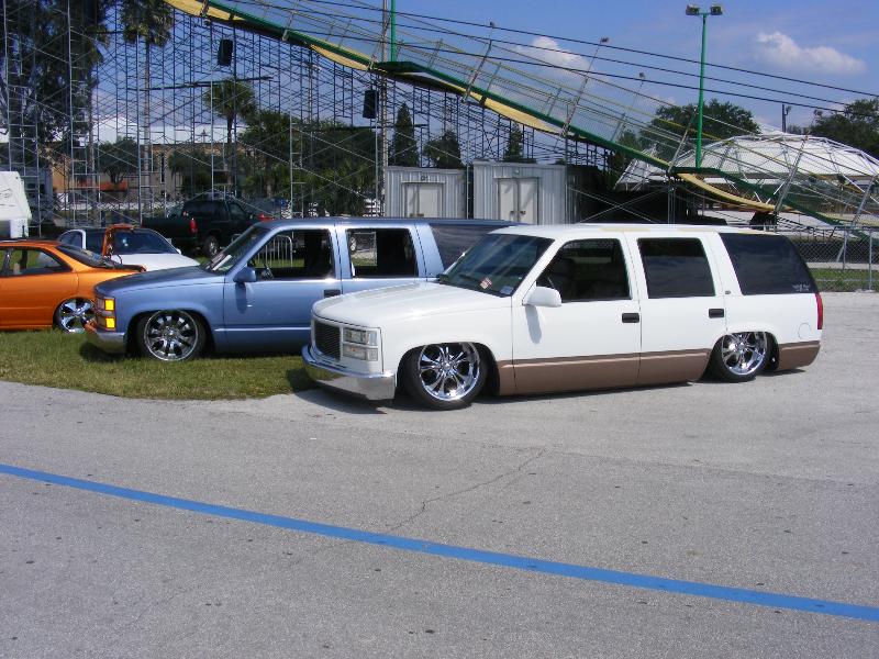 djm spindles, upper and lower arms, conitech 2600s in the front. the frame has been sectioned to lay flat, triangulated 4 link and 2800 conitech bags. all on a york 210 and 1/2 lines and E Mac Daddy air valves. all work done by The Shop in Longwood, Fl 407-767-9296 lays on 22s