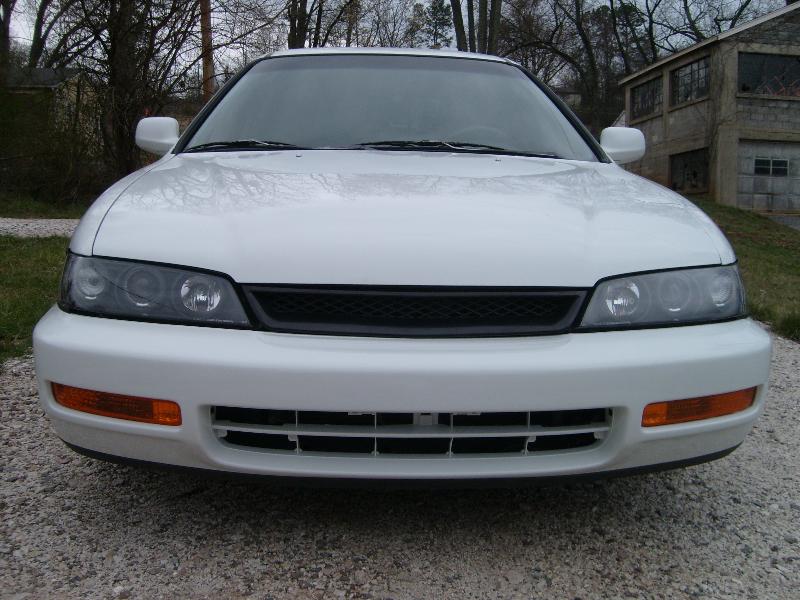 White, stripped pinstripping, Halo projector headlights, JDM black grill, shaved bumper holes, painted grill