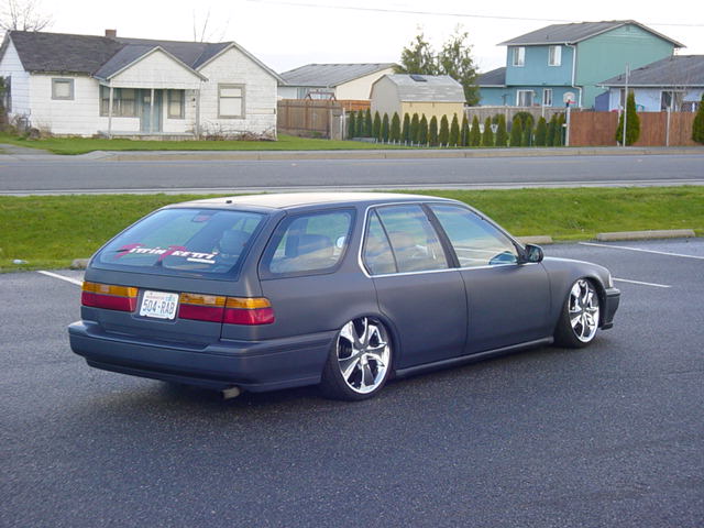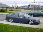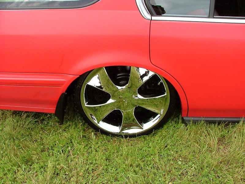 Custom mounts, shaved wishbone and cut strut tower for more drop.