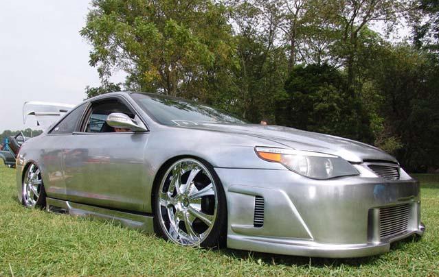 shaved everythang .. 05 BMW 5 Series headlight and tail light conversions .. chrome paint job .. black widow 2 body kit and hood .. dual excaust .. TV behind the license plate .. billet in the hood and body kit