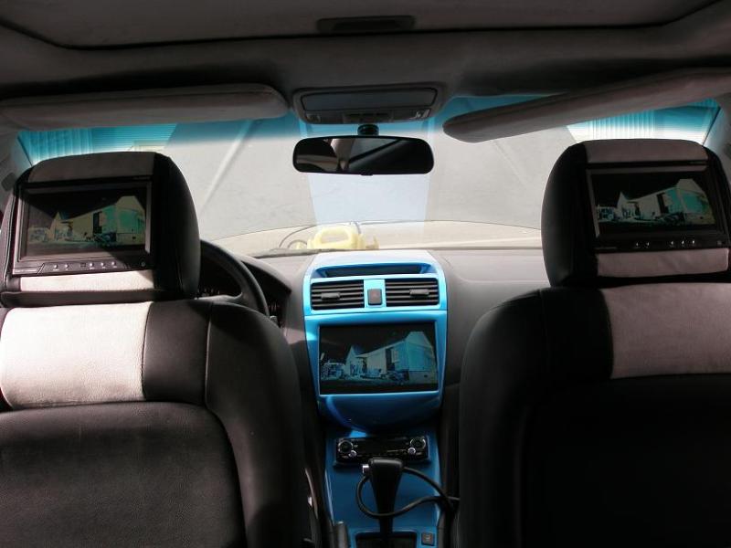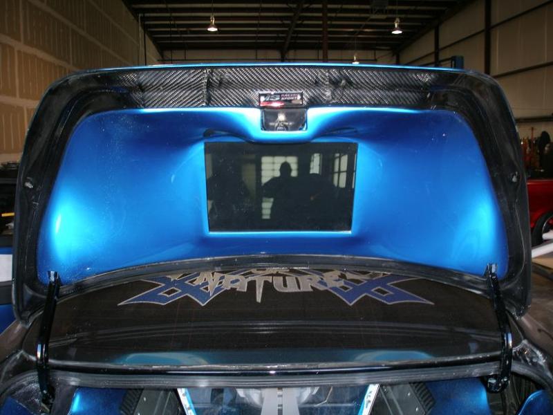 HID's, VIS Invader Carbon Fiber Hood, VIS Carbon Fiber Trunk, shaved door handles, 2-tone black and blue (dupont warp speed blue) all matrixed out done at Ten-Ten Customs in Vegas