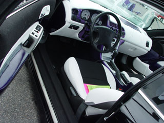 Full black and white tweed interior with raised flames! A few smoothed and painted parts with purple pearl and blue flake!