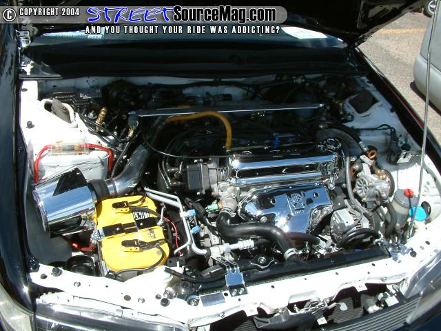 Chrome plate valve cover, chrome cold air intake, chrome and billet engine dress up kit, Polished strut tower bar, Optima Yellow Top Deep Cycle Battery, Oh and some white wire loom... Chromed heat shield, hood prop rod, misc brackets, lots of bolts chromed!