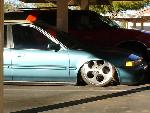 custom dropped spindles starting with a ryane motorsports civic dropped spindle. shortened to put ball joint inside wheel since dropped spindles can only work on a 16 with low pros. custom upper control arms with bag on top. plated framerails