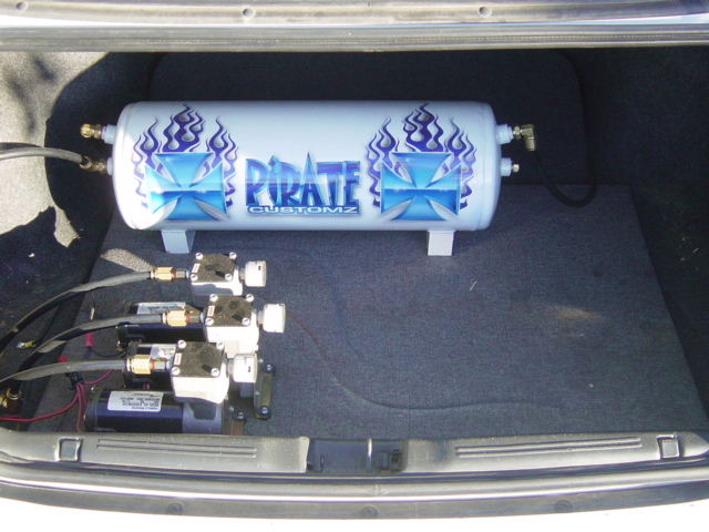UPGRADED!!! again!! F/B/S/S WIRELESS PEOPLE!! air box! 1/2" g.c. extreme 3 way 450 p.s.i. 3 thomas compressors and air brushed tank by Air Creations and installed by me and Pirate Customz!! check out piratecustomz.com and aircreations.biz