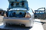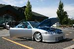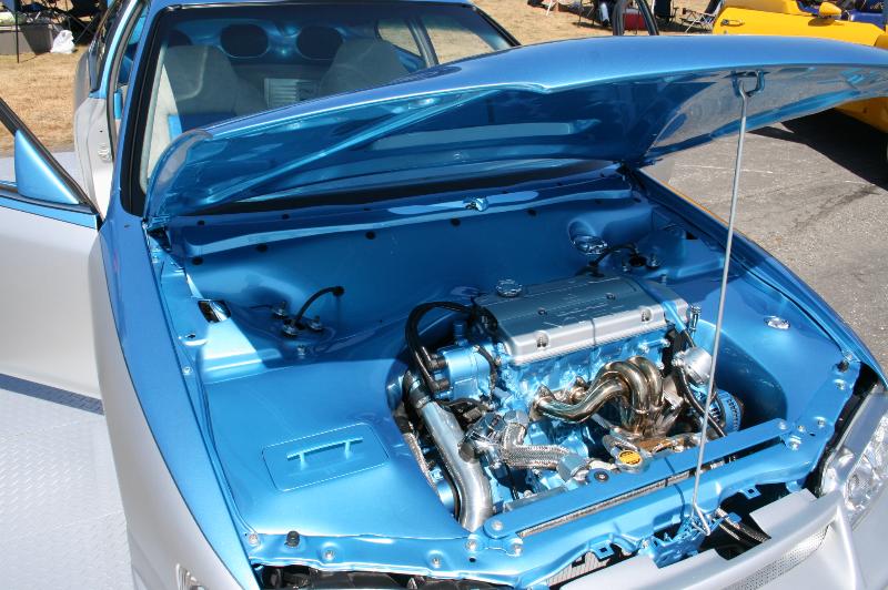 Black Widow 2 Kit and Hood, Shaved handles,gas door, body line, emblems, gutters, trunk lid,bumper.Electic blue bottom charger silver with satin clear.