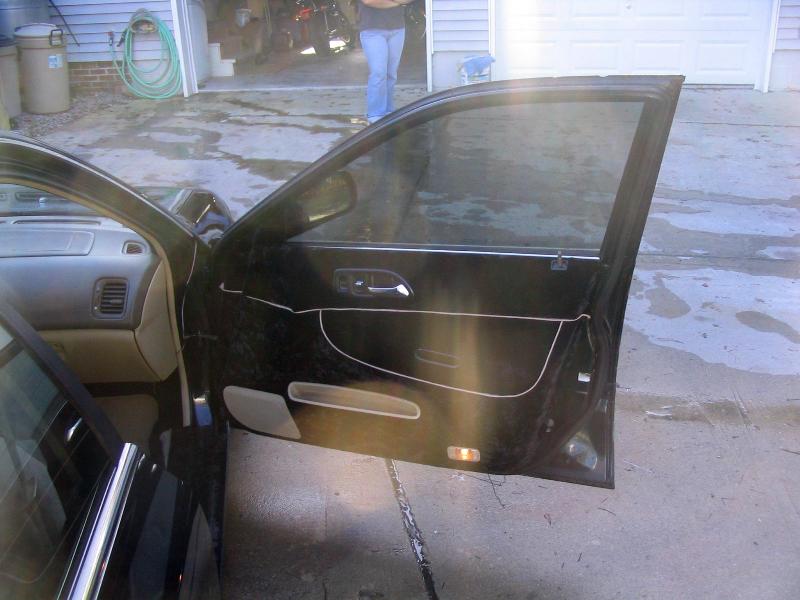 black carpet, black velvet w/tan trim, messagers in back seats,a few parts painted,