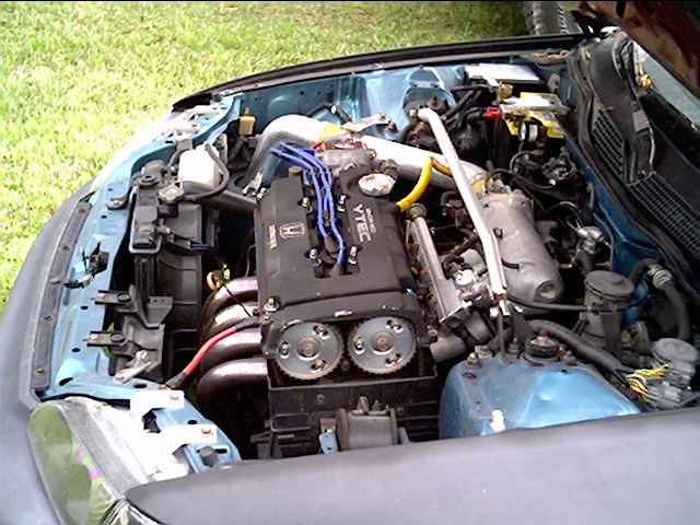 B16 w/GSR trans. centerforce dualfriction clutch, aem camgears, aem fuel rail, aem pres. regulator, accel injectors, venom fuel pump, powercore header, apexi cat back exhaust, skunk2 intake manifold, cheap coldair intake, msd external coilw/cap, ngk plugs and plugwires