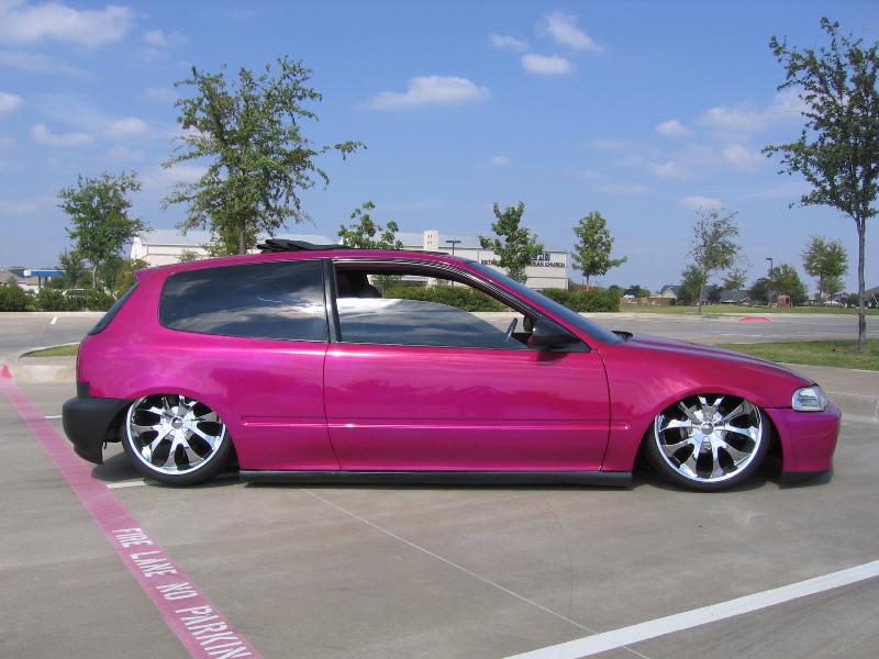 shaved doors handles,tailights,license plate holder in rear, invader body kit house of kolor magenta paint ,30 by 45 ragtop