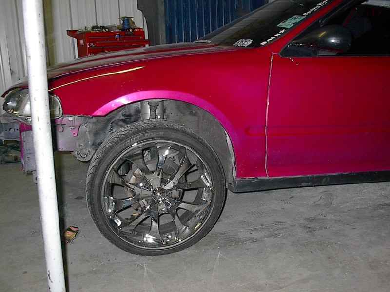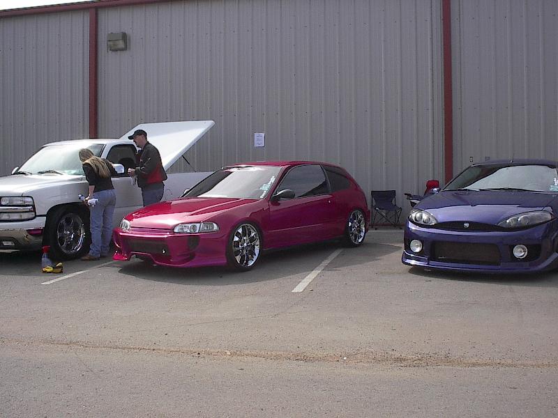 4cyl. nothing special with AEM intake,9mm sparkplug wires with some painted accessories chrome header and downpipe