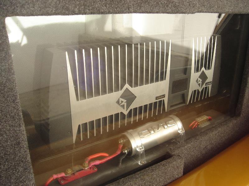 15" Clarion subs in a Wall, Rockford Fosgate 800a2/150a2 with punch link. Rockford Fosgate PA2 EQ, Alpine Headunit. Infinity Components, 5.4" Clarion Screen Custom Mounted.