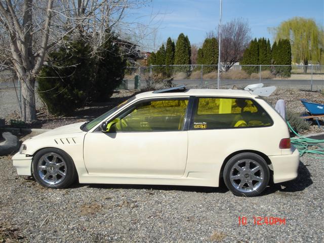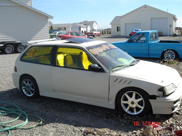 Shaved door handles,body line, roof lines,gas door,emblems,hood squirters,antenna,stock spoiler, molded on buddy club side skirts, buddy club rear body kit,z3 fenders, custom sun roof, hood pins,yellow window tint, alum wing on roof.