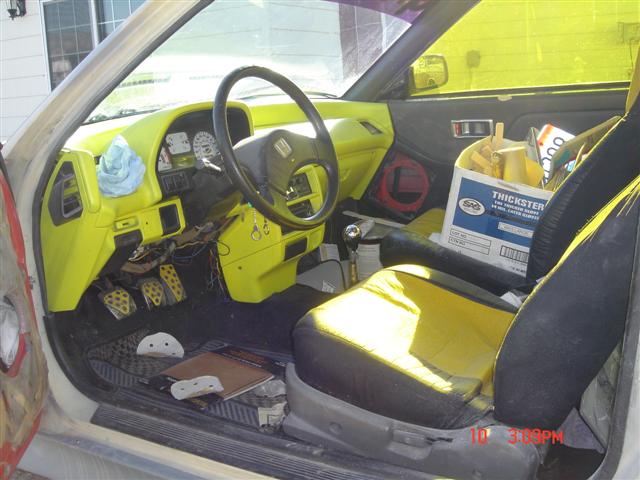 Yellow painted 91 ex smoothed dash, seat covers, leather rear seat painted yellow and black, white indiglo gauges, racing pedals, Lots of junk