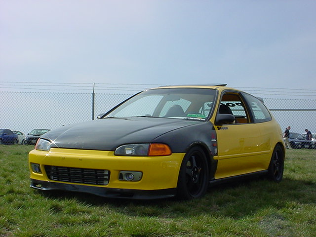 Complete color change to Sunburst Yellow inside and out.Shaved handles and antenna.Spoon Sports Carbon Fiber hood,fenders,rear wing and front chin spoiler.Spoon Sports Carbon-Fiber Door Pillars,and Power Mirrors. Custom Carbon Wrapped Tailgate. JDM EG6 SiR2 Head Lights w/H4 HID Conversion Kit, Stanley amber Side Markers Tail Lights and Vision amber Corner Lenses. JDM EG6 SiR2 Projector Fog Lamps. *Custom Reflective Spoon Graphics.