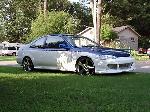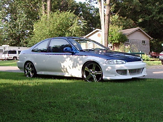 full custom 2-tone paint with tribal stripe dividing the colors. Wingswest front bumper. Shaved bodyline, hood squirters, trunk and custom rear bumper.