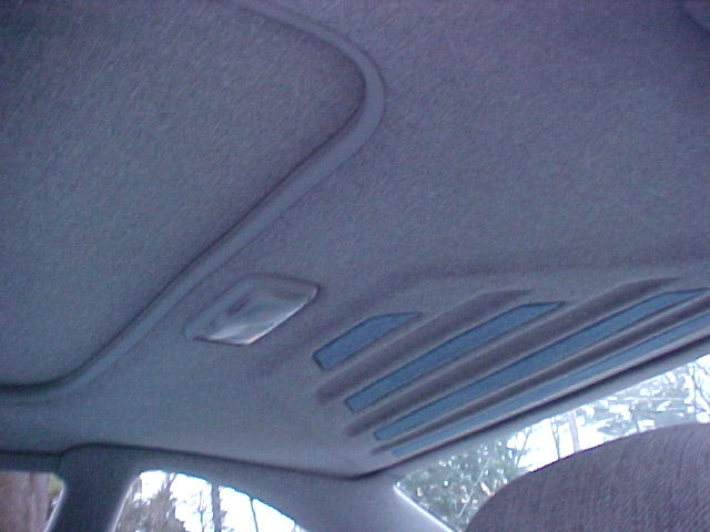 Completely covered in blue and gray tweed (dash, seats, visors, roof, rear deck, trunk, all interior parts removed and covered. Indiglo gauges, Ractive shifter cover, e-brake handle, gauge cluster cover, dual gauge pillar with air fuel gauge and amp gauge, pedals, neon and strobe lights under seats and dash. Billet specialties steering wheel.