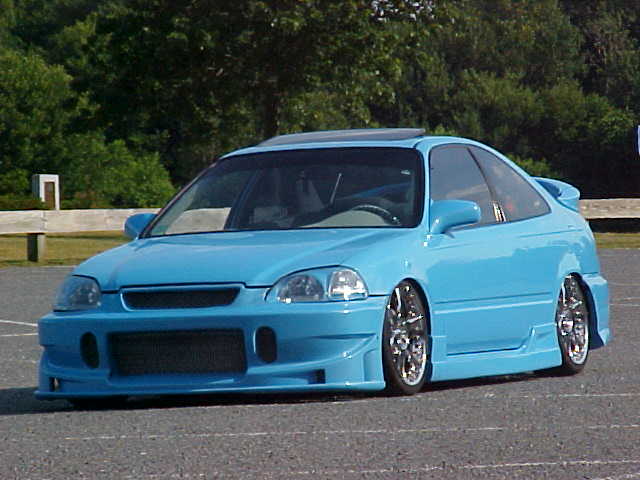Panasonic deck, 2 Mmatt amps, 2 Mmatt 12" subs in a fiberglass box placed in the spare tire well, extra battery hidden in the trunk, system slams