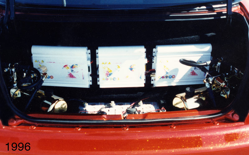 It had 2 chrome and gold pumps 8" pistons up front and 10" in the back. All that has been yanked out.