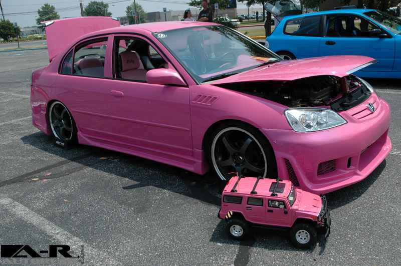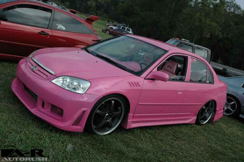 Pink Passion with tri-layer pearl, shaved rear door handles, fiberglass body kit, z3 fenders, projection headlights, Euro tails, Pink Neon underbody and in fender inserts
