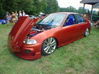 Primer (I like mine with no shine), everything shaved except taillights, gas door relocated into taillight, molded rear bumper, VIS Xtreme GT front bumper