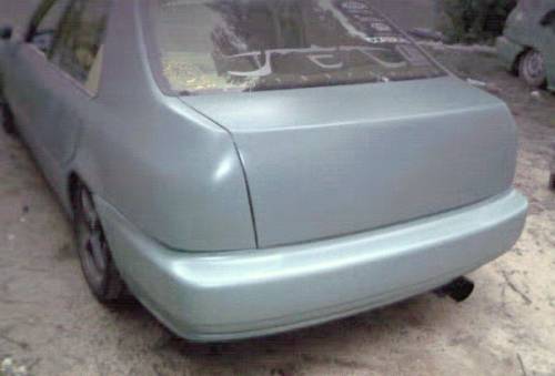 shaved everything....inner tails, outer taillights, tag, handles, wing holes, trunk key hole, squirters, moldings removed and holes behind them shaved leaving body line, antenna, suicide rear doors, LED taillights in rear bumper, sliding rag top, Titanium Fiber hood, ABS Dynamics modified CW-2 front bumper to clear FMIC, ABS Dynamics ZERO Side Skirts, ABS Dynamics Buddy Slim rear lip, ABS Dynamics carbon fiber bomex style wing (un installed), ABS Dynamics carbon fiber twin beam headlights, JDM style amber corners, sea foam green primer