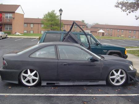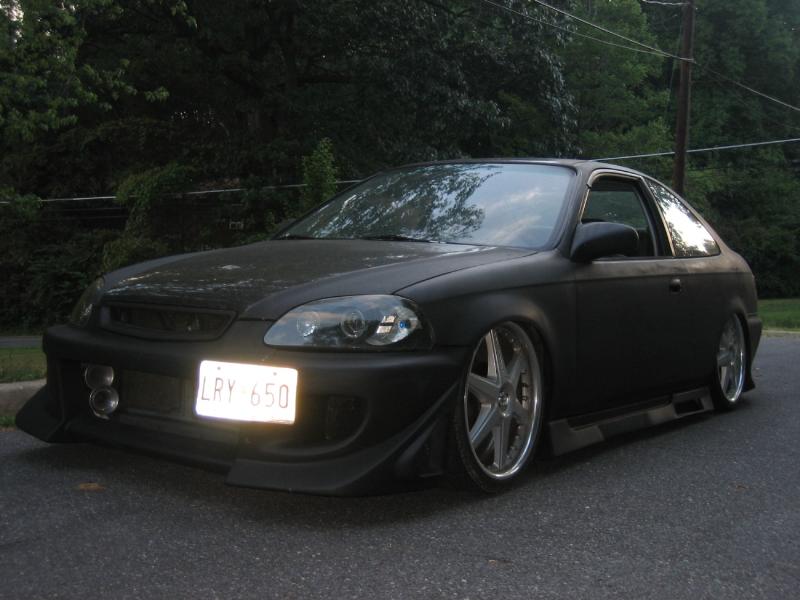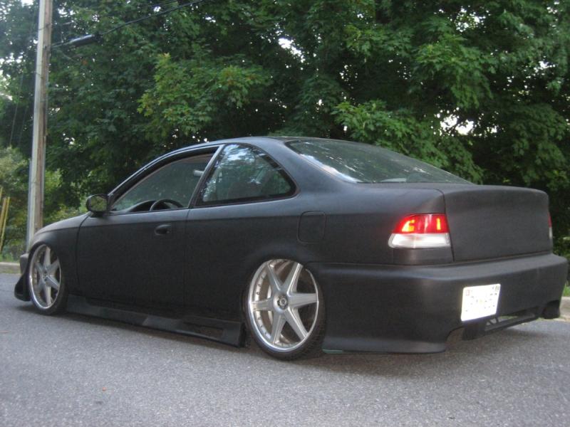 car is for sale, i am taking offers. i now have a oem carbon fiber hood on car, 00 si taillights, and car was resprayed flat black, i will have new pics up tomarrow. i also have a whole lot of extras with car such as lambo door hinges, civic si trunk lid, taillights, guage cluster, hood, front bumper, side skirts, ramdom interior pieces, and so much more and its all going with the car. my name is dave and my cell is (443)235-0551