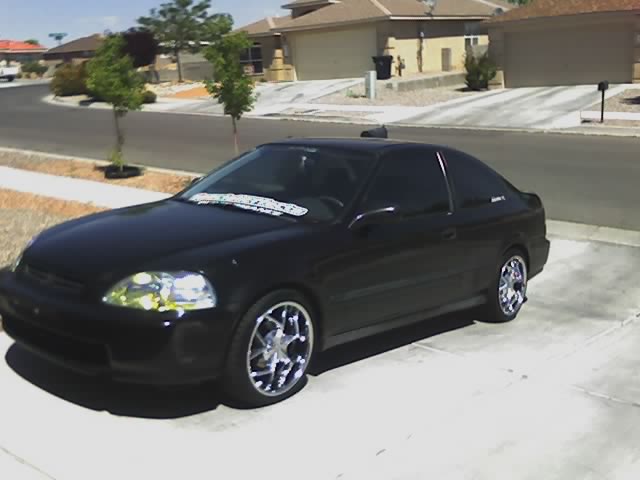 Trenz billet grill, custom billet grille for bottom grill on the bumper, new stock fenders & front and rear bumpers, Stanley JDM sidemarkers, type R front and rear lips, new hood, new trunk deck lid, gunmetal headlights, new stock engine splash guard and wheel well splash guards, straighten out the body, shave antenna, black leather/dark gray suede interior, Civic EX center console w/arm rest, power door lock conversion, billet window cranks, small Autometer tach, new windshield, all Alpine system (deck, front components, back speakers, 1 10" sub, amp), optima yellow top battery, engine dress-up kit, chrome valve cover, new radiator, strut bar, rear lower tie bar, dark metallic gray stock looking paint job. after all that, maybe rebuild the engine w/valve job, throw on a supercharger and get it bagged.