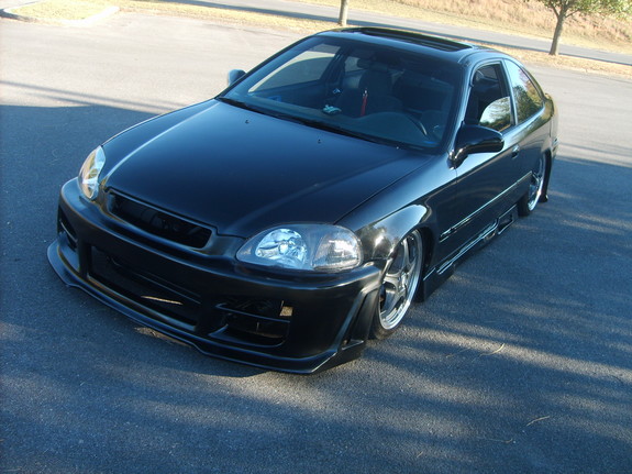D16Y8 sohc v-tec with a cold ait intake,4-2-1 racing headers,high flow cat,2.5" piping into 4" tip,hyperground kit,9.33mm spark plug wires,polished valve cover,polished distibutor,polished fuel rail,clear distributor cap,chrome oil cap,chrome overflow tank,chrome battery tie downs,brushed aluminum battery tie down,polished transmission housing,chrome brake fluid resvoir cover,custom paint and an anodized blue radiator cap cover