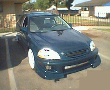 BLACK WITH A GREEN PEARL, SHAVED SIDE MOLDINGS, BLITZ FRONT BUMPER, NEOSHARK SIDE SKIRTS, AVENGER REAR BUMPER,
