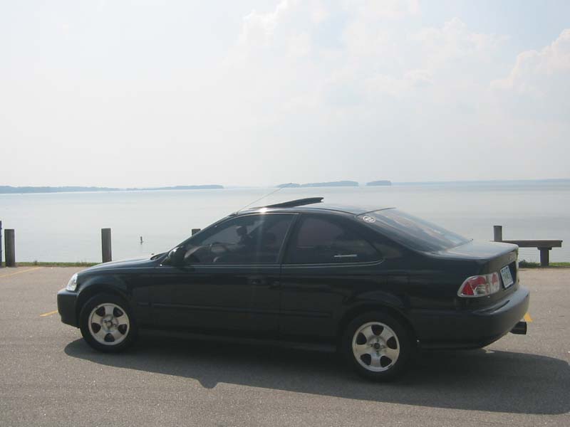 Black with Pin Stripe, Sunroof, Exotic Sticker, Next Generation Euro tails, Clear Projectors with Halos up front, Red Euro Blades, White Cobra Eyes windshield sprayers, White Street Glow Gold Series Underbody Ground Effects,Two white mesh grills installed into factory bumper, and 20% tint all around with 5% on the sunroof and the strip on the windshield, Lightweight Composite Spoiler with LED brake light, shaved all factory emblems, evil H with white neon glow