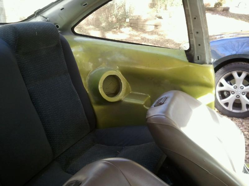 integra front seats, custom dash, custom made right hand drive, fiberglass speaker pods in rear, vertical doors