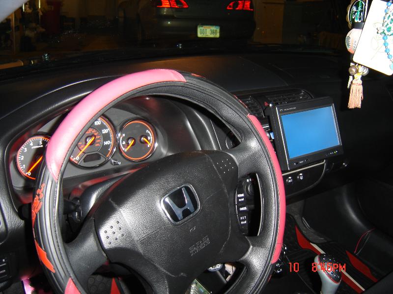 A 7" LCD screen with a PS2 on it, shit knob, racing pedals.