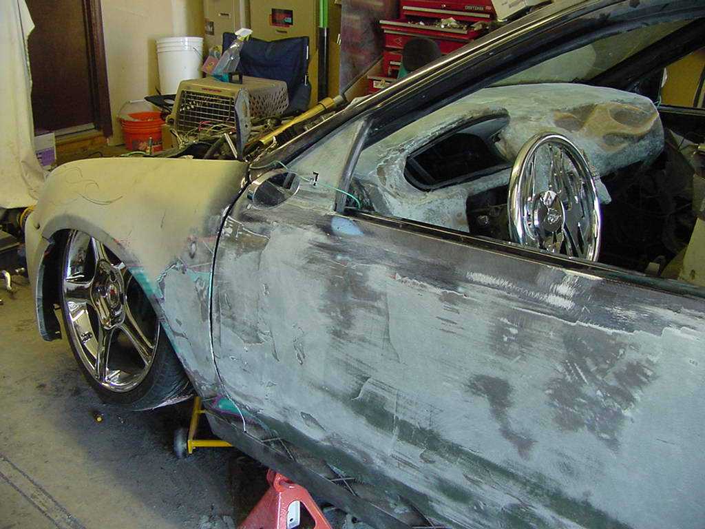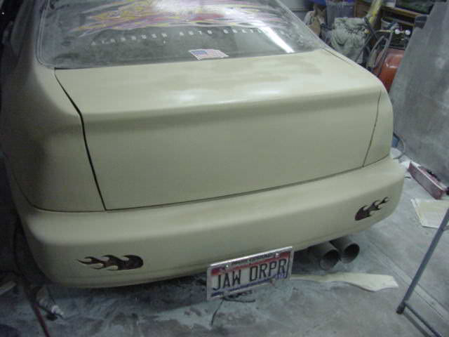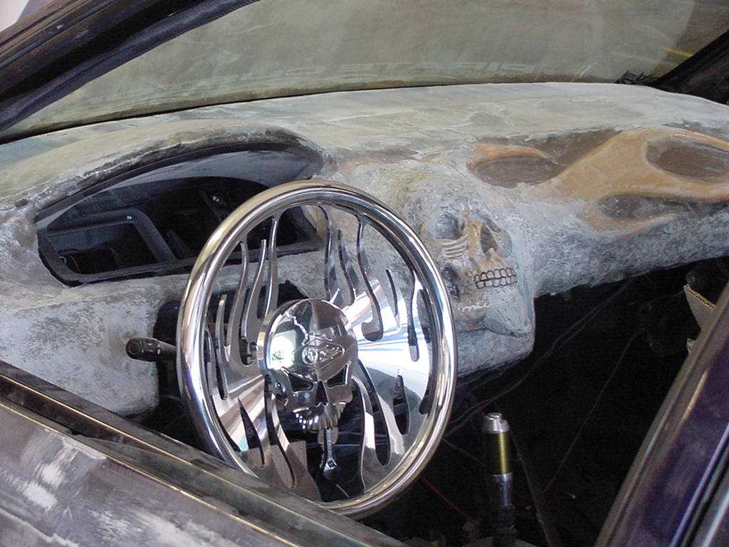 fully fiberglassed interior, 4 tweed Civic buckets, 2 tvs, DVD, B.A.D. steering wheel-"Inferno Skull", polished shifter, pedals