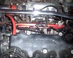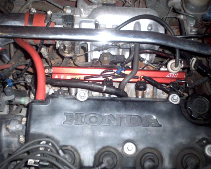 1.6 vtec. AEM fuel rail, pressure regulater,timing gear, injen intake,headers,exhaust, msd 6al, blaster coil, msd wires and nitrous.