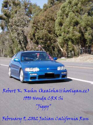 Stock SOHC D16 with an AEM adjustable cam sprocket, AEM CAI, DC Sports (ceramic) exhaust header, Random Technology Catalytic Converter, mandrel bent pipes from the cat back to a Bullet Stainless Steel muffler and Ractive tip. Cylinder head was shaved to bring compression ratio up.